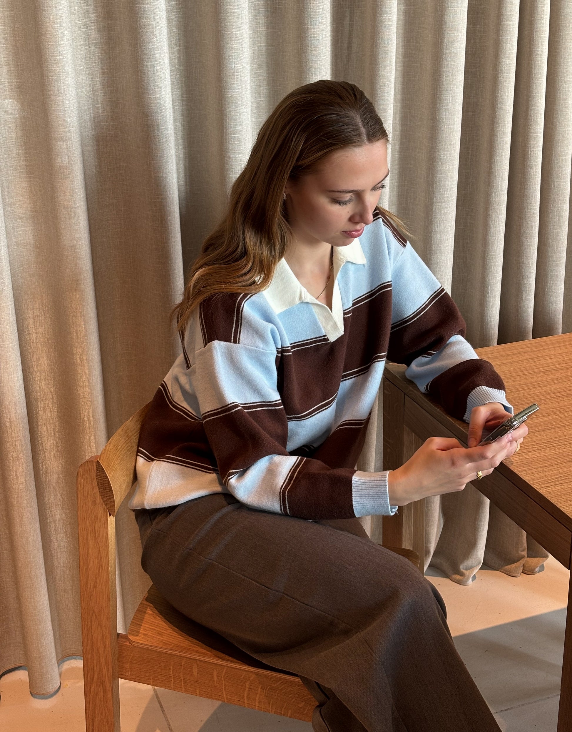 Moderne polo med loose fit og et stilrent, afslappet udtryk. Den bløde kvalitet og de brede striber giver et trendy look perfekt til både hverdag og casual outfits. Style den med bukser, jeans eller nederdel for et ubesværet og moderne outfit. Fås i både blå og lyserød